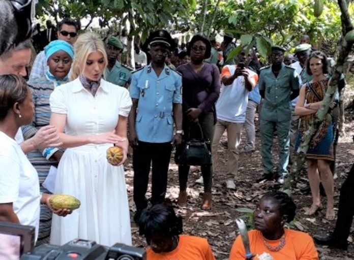Ivanka Trump, fille et conseillère spéciale du président américain, a annoncé mercredi en Côte d’Ivoire une aide de deux millions de dollars pour les caisses d’épargne de femmes dans le secteur du cacao, ont rapporté des journalistes de l’AFP.